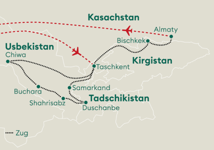 Für einen Aufenthalt bis zu 30 Tagen in Usbekistan, Tadschikistan, Kasachstan und bis zu 60 Tagen in Kirgistan, ist kein Visum erforderlich.