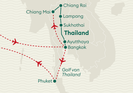 Hinweis: Bitte beachten Sie, dass der Flug von Bangkok nach Chiang Mai nur inklusive ist, wenn Sie den Langstrecken Flug via uns gebucht haben.